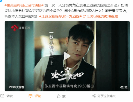 秦昊主演的新剧《哈尔滨一九四四》已于近日开播,秦昊首次一人分饰两角,他在接受采访时被问到这在表演上遇到的困难是什么,如何设计小细节让观众更好区分两个角色。