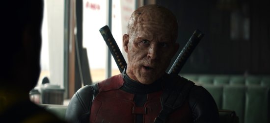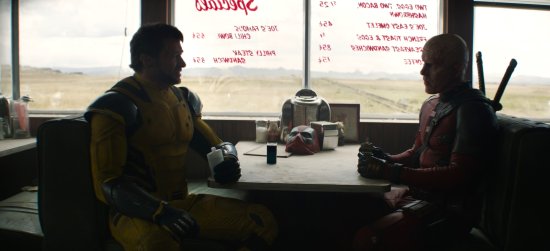 《死侍3》曝光两段新正片片段,金刚狼和死侍在餐厅中吃饭,狼叔被韦德的硫酸脸恶心到。