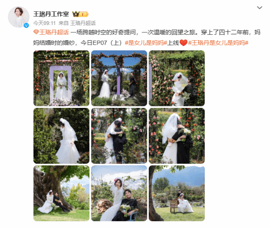 今日,“王珞丹穿婚纱”登上热搜。王珞丹工作室在微博中发布了王珞丹身着母亲42年前的婚纱的婚纱照,并同时配文:一场跨越时空的好奇提问,一次温暖的回望之旅。穿上了四十二年前,妈妈结婚时的婚纱。我们一起来欣赏一下。