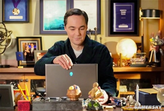 两人认真地看着电脑屏幕,背景里还有谢耳朵在获得诺贝尔奖时和艾米的合照,细节满满。