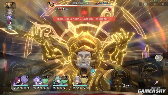 这一阶段,BOSS不再使用常规攻击,而是用一个需要七回合吟唱的攻击“太初有为”来代替。在吟唱与施放的过程中,我们可以找到不少来自于《圣经·创世纪》中的元素:每回合的吟唱都代表着“秩序”创世所经历的七个部分,而这则脱胎自圣经中天主七日创世的过程。