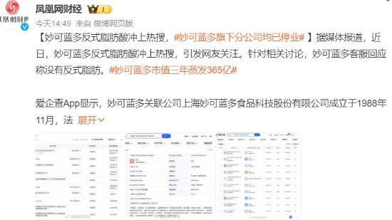 妙可蓝多反式脂肪酸冲上热搜 旗下分公司均已停业
