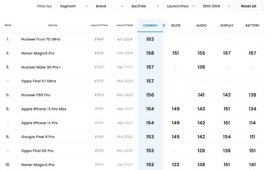 DXO新评测:华为Pura 70 Ultra影像测试排名全球第一