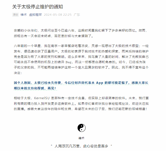 安卓神器"太极"宣布彻底关闭 作者发声:无力继续维护