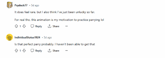 在论坛的评论区中,有很多玩家纷纷表示,自己在游玩《剑星》的途中并没有看到该动画,甚至在“新游戏+”模式中也是如此。但也有玩家表示自己早就发现了该动画的存在,且已经触发多次,目前尚未知晓原因。