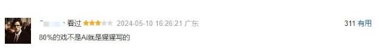 获得高赞的短评表示,本片节奏偏慢,并非爽片,虽是商业特效片,特效方面出色,但主旨主要探讨的却是人类和自然的矛盾。剧情方面平淡,整体而言并无太多惊喜,难免审美疲劳,以至于有观众调侃“80%剧本不是AI写的就是猩猩写的”。
