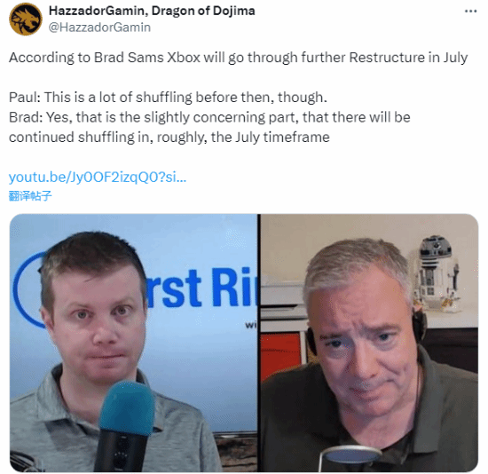 近日,据推主HazzadorGamin消息,科技记者Brad Sams在一档播客节目中透露,微软游戏业务Xbox将在七月份迎来进一步的重组。虽然他并没有解释重组过程的细节,以及是否会有工作室继续被关停和裁员事件发生,但他将重组描述为一件“令人略感担忧的事情”。