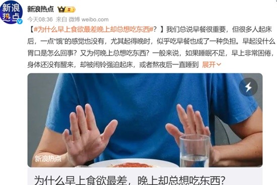 早起没什么胃口是怎么回事?又为何晚上总想吃东西?