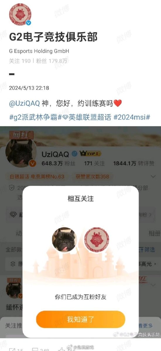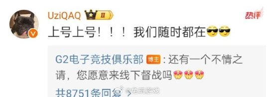 就在昨天,G2也喊话Uzi:神,您好,约训练赛吗!Uzi回应:我们随时都在!