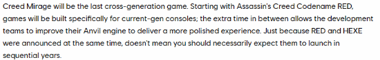 早在2022年,育碧就首次提到从《刺客信条:影》开始,之后的《刺客信条》系列续作将是“专门为当代主机打造”。目前看来也貌似证实了这一点。