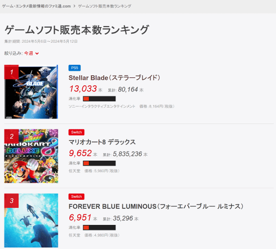 重点关注:《剑星》连续三周登顶日本实体销量榜第一