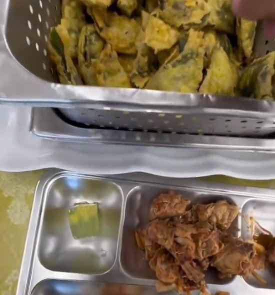 对此网友纷纷表示:“那个炖鸡,我以为是一锅鸡脖子”“从那个果冻开始就不想吃了,三餐准备果冻,厉害了”“头一次看食堂放这么小的勺子和夹子”“看起来那么有饭缩力的菜,勺子还那么小,蒯起来可够费劲巴拉的,要是味道真的很难吃,打菜都能打出来气”。