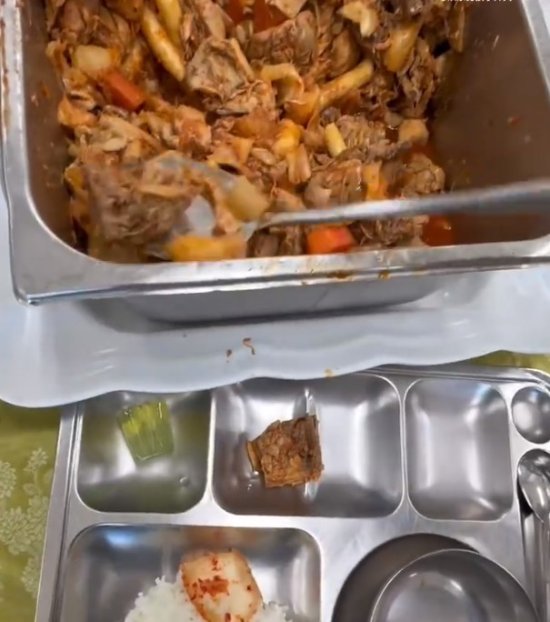 5月17日,网友发视频展示韩国大学食堂的菜式,从一开始就开始了吐槽模式:绿色的小果冻也算一道菜,而且还每人限量拿一个;好不容易轮到的炖鸡块,然而味道却一点都不好,炖鸡居然有烤鸡的味道;辣白菜、沙拉倒是不算少,就是酱汁都有点臭臭的,让人毫无食欲。所以说韩国大学食堂真的适合减肥。