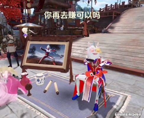 《逆水寒》中的江湖百业系统,在身份上把玩家区分成了不同的职业。而在虚拟世界中继续扮演“打工人”身份的玩家,自然也不能像现实中那样唯唯诺诺。在外观上整活,就成了他们放飞自我的最好方式。因此,你能在汴京城中看到奥特曼在路边摆摊,也能看到美少女战士,在野外的水面上优雅地跳来跳去。