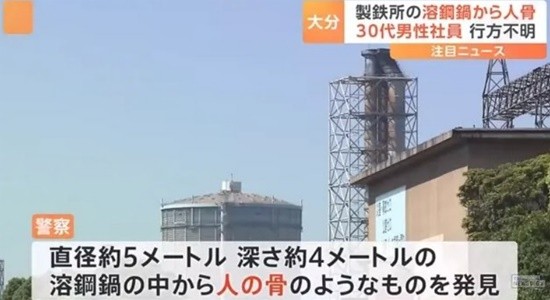 日本制铁工厂熔炉中发现人骨 或为该工厂失踪员工