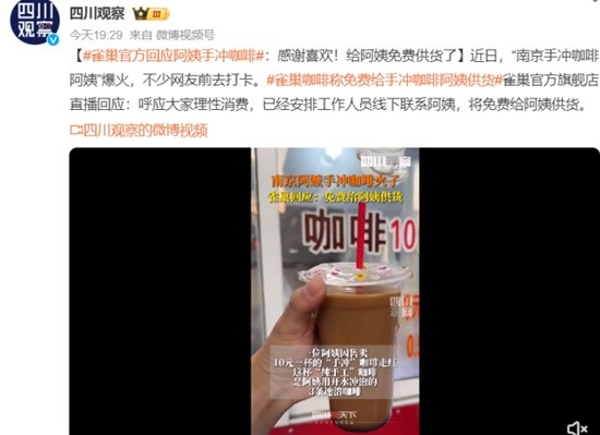 南京阿姨卖的10元手冲咖啡走红 雀巢官方:将洽谈合作