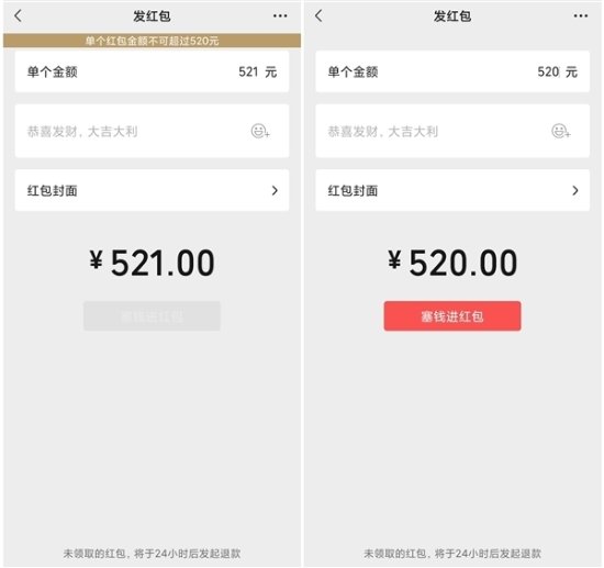 今天0点一过,微信红包的金额上限已经特别从200元调整为520元,方便情侣之间互相表达心意,这也是微信历年来的传统惯例了,每年会在三个日子开放大额红包,除了520之外还有西方情人节“2月14日”、中国情人节“七夕”。