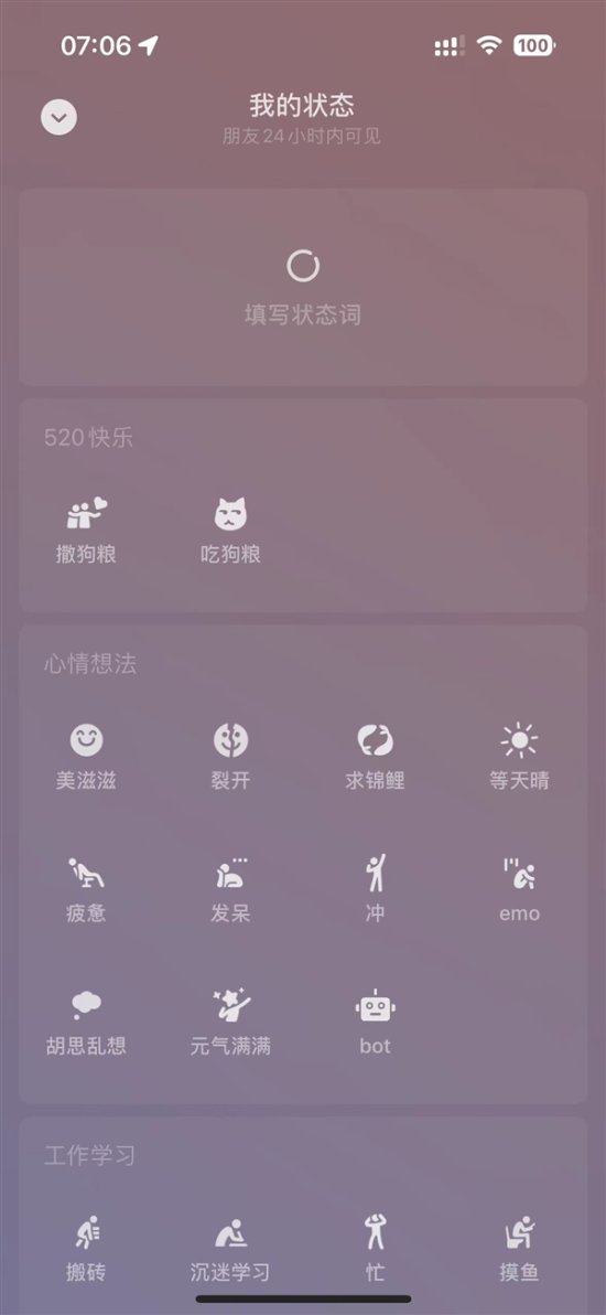 此外,微信个人中心页面的状态里,还上线了两个节日限定状态,分别是“撒狗粮”和“吃狗粮”。