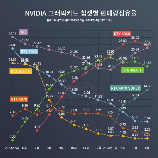 英伟达显卡在韩国非常受欢迎:RTX 4060占比最大