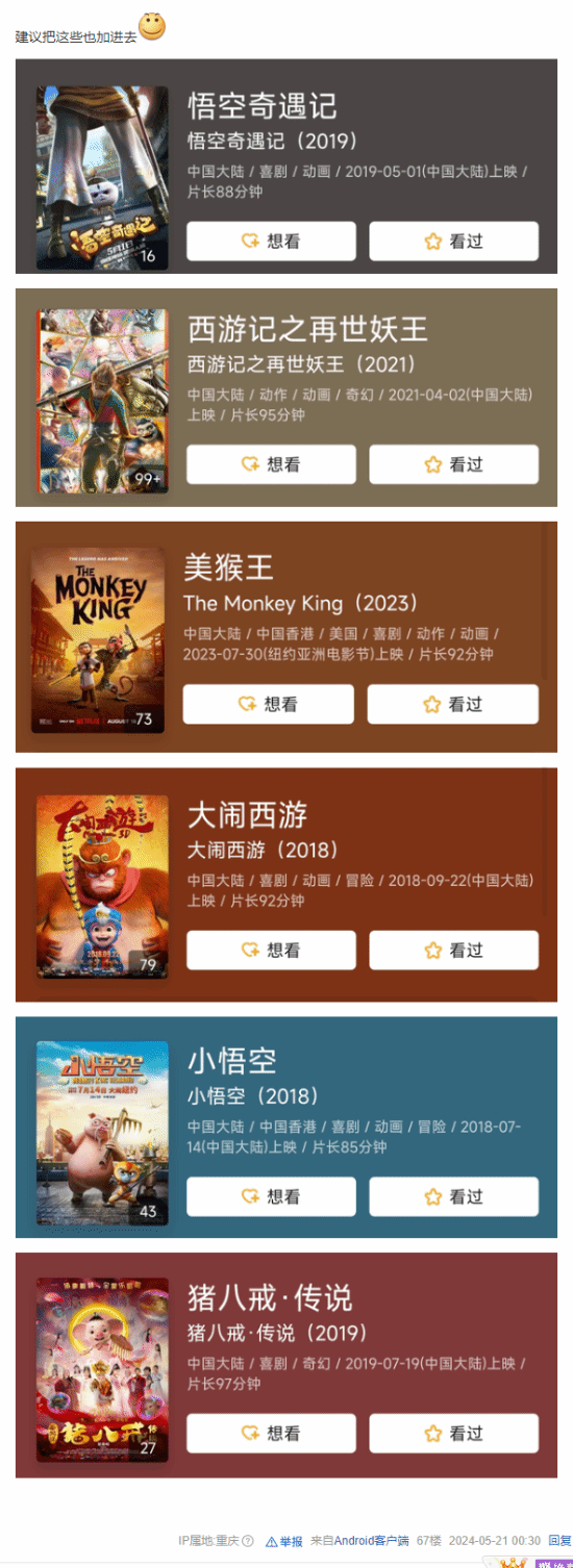 还有网友汇总了多部西游改编的低口碑动画电影:建议将它们也放进去。