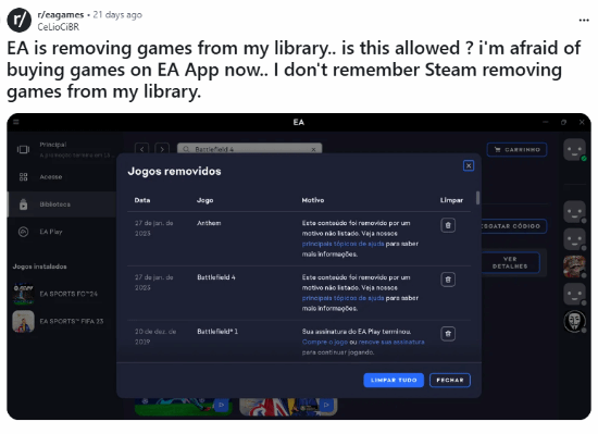 充满疑惑:部分玩家在EA商店购买的游戏被无故移除