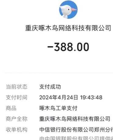 最近,南京市民张女士的一次消费体验,却让她对啄木鸟的品牌,产生了很大质疑。这究竟是怎么回事呢?5月20日下午,带着疑问,记者致电了重庆啄木鸟网络科技有限公司。“388元的维修价格,是我们的维修师傅根据现场综合定价评估,最后与消费者面议的结果,这个价格我们平台是认可的。”该公司品牌部负责人谭女士告诉记者,啄木鸟后台显示,张女士家的维修流程也是没有问题的。如果消费者认为平台收费过高,可以请第三方鉴定。至于后期为何会退一半费用,谭女士解释称,这是为了提高消费者的消费体验,而给出的“心理补偿”。