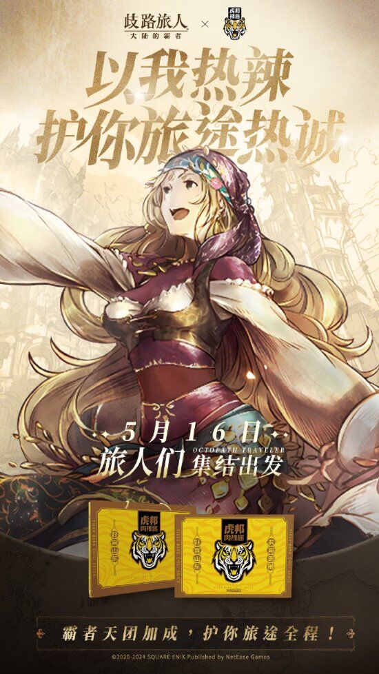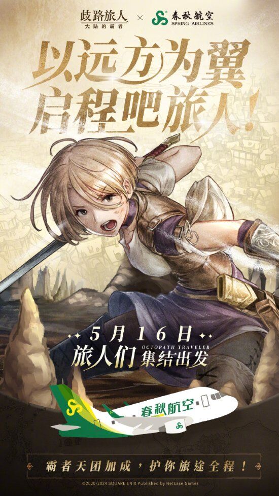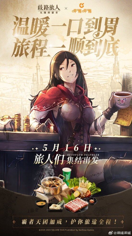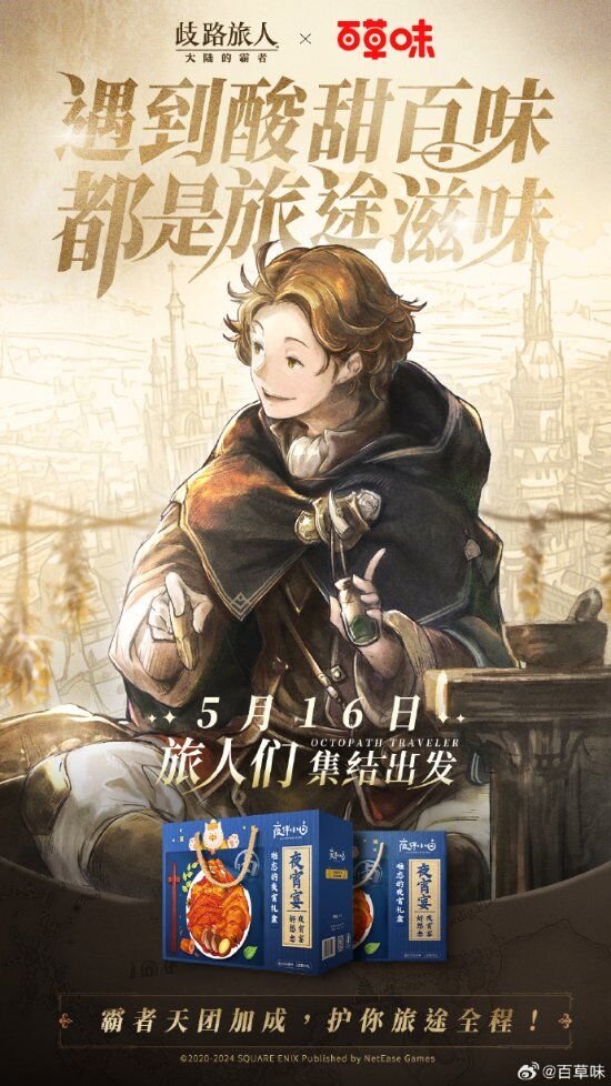 除此之外,《歧路旅人:大陆的霸者》在同一天与多个品牌进行了联动,有春秋航空 、虎邦辣酱、百草味、呷哺呷哺等品牌,联动海报一并放出。