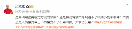 周鸿祎:特斯拉FSD撞火车后 对纯视觉方案产生质疑
