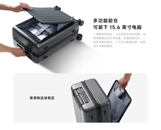 449元 小米前开盖登机箱20英寸上市:支持干湿分离