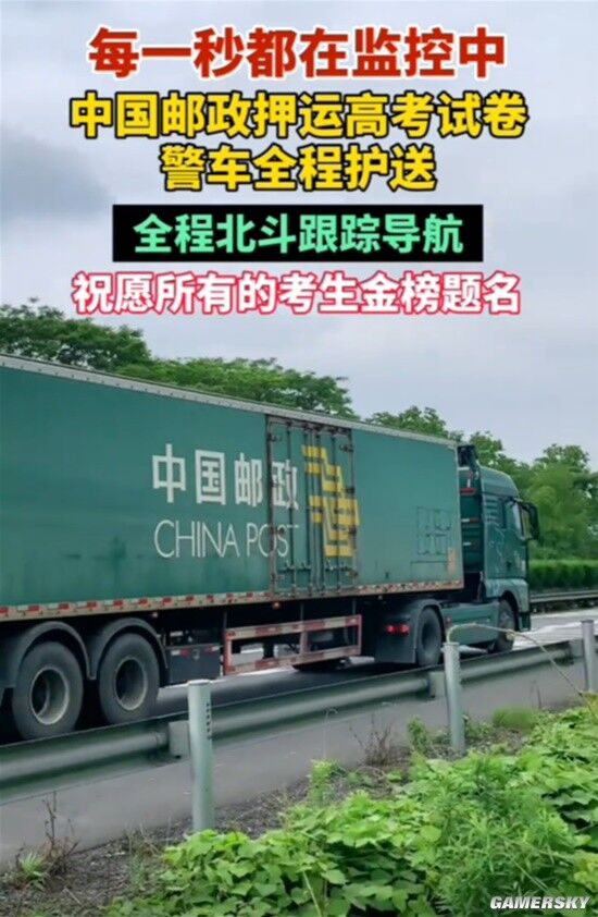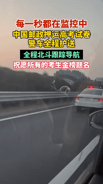 现在,高考试卷已经陆续运往各地,有网友在路上偶遇中国邮政押运高考试卷,警车全程护送,全程北斗跟踪导航,每一秒都在监控中。
