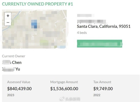 Chen 和 Yu 去年4月以$204.8万美元购买,据房产网站Redfin预计,房产估价为$2,23万美元,如今房主开价$212万美元(折合人民币1500多万)出售,算得上是低价出售。