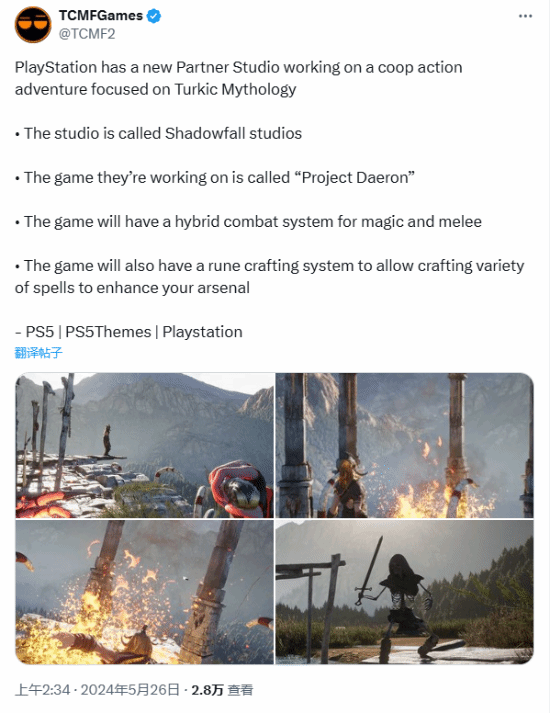 据博主TCMF2表示,索尼PlayStation正在与一家工作室合作开发一款以突厥神话为主题的合作动作冒险游戏,TCMF2透漏了该款游戏的部分细节,我们一起来看一下。