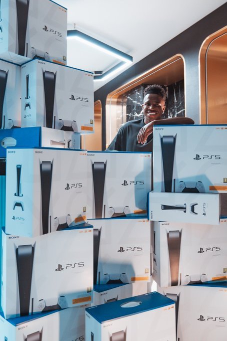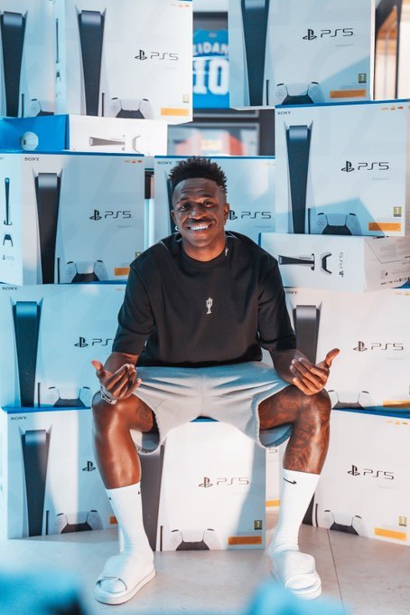 皇家马德里足球俱乐部的前锋球员维尼修斯·儒尼奥尔最近在社交媒体上晒出了自己照片,展现了他本人被大量PS5主机包围的场面。