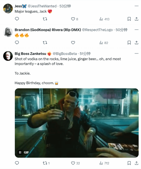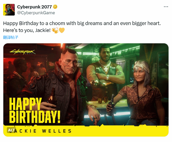 《赛博朋克2077》官方为游戏中的角色杰克庆祝了生日。