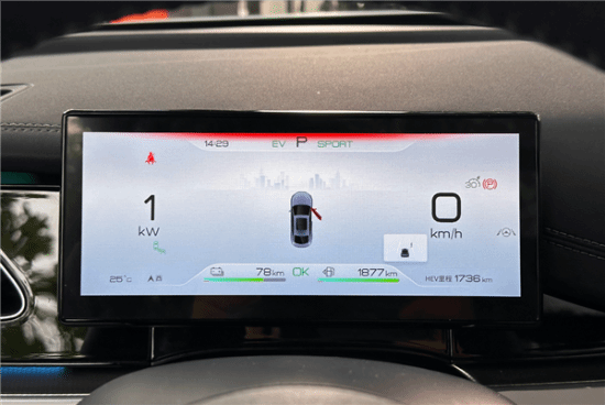 近日,有拿到实车的媒体发布了一张该车的仪表盘照片,率先曝光了该车的续航信息,表显纯电78公里(满电120公里),满油1877公里,也就是说,满油满电情况下,整车续航接近2000公里,可以从北京直接开到广州。