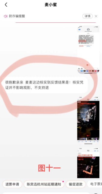消费者表示:平台出售这种有明显遮挡的座位票,不但没有提前说明,出票时间晚让消费者无法退票,还是以最贵的看台票价出售,这不是以次充好,强制让消费者买单吗?希望大麦网能多一点真诚少一点套路,遮挡座位要么不要出售,要么降价并告知消费者,不要这样欺骗消费者。