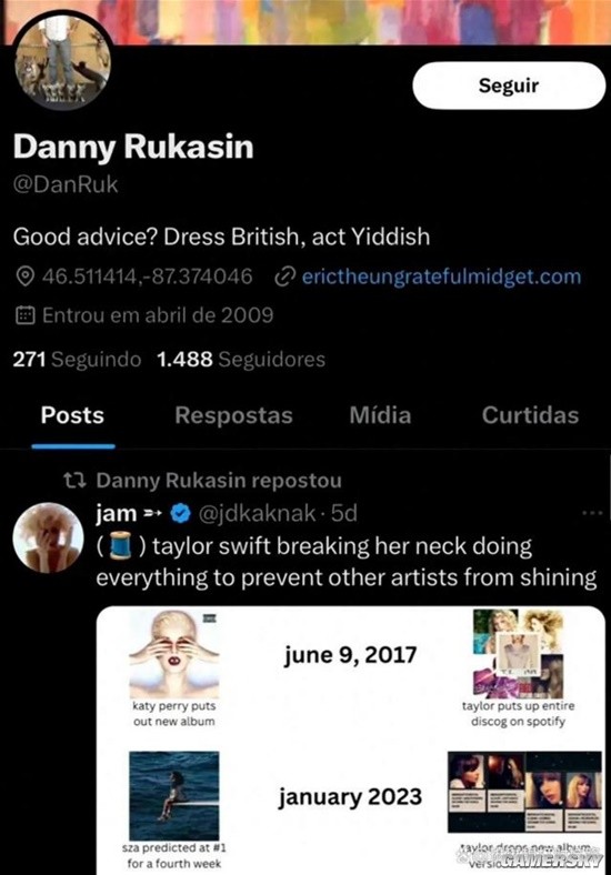 碧梨Billie Eilish经纪人DannyRukasin在推上转发了一条指控霉霉总是打压其他女歌手的推文,该推文总结了霉霉多次在其他歌手发新专辑或者可以达成榜单记录时,突然发布新改版专辑。