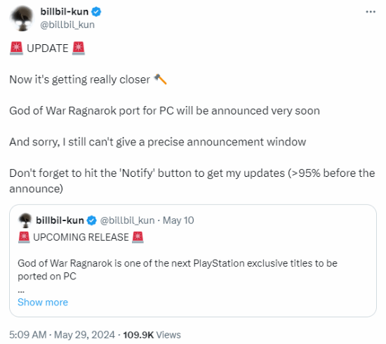 靠谱舅舅党billbil-kun今日发推称,虽然无法给出确切的时间,但《战神:诸神黄昏》PC版很快将公布。他还表示,自己有超过95%的机会拿到公布日期或潜在的发售日期。