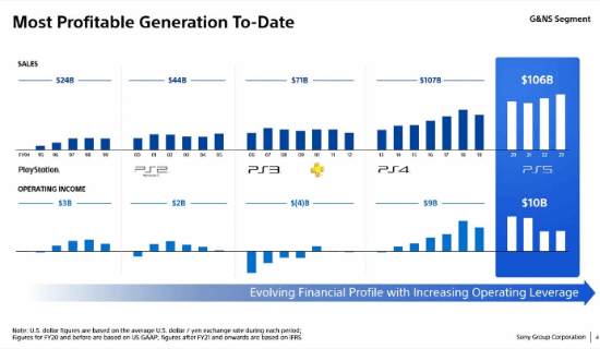 需要注意的是,这些金额是该世代业务的总销售情况,而不是具体硬件或游戏销量的反映。PS5世代“不仅包括PS5本身,还包括这一代主机的所有业务,以及PS4的销量和在此期间发布的游戏。”
