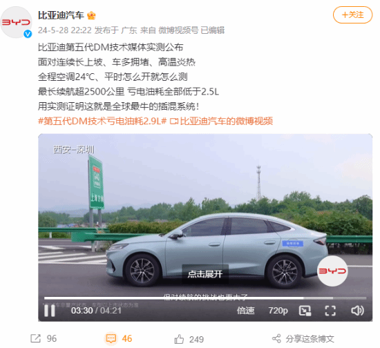 比亚迪秦L DM-i正式发布,首搭第五代DM混动技术,号称百公里油耗2.9L,满电满油2100公里。