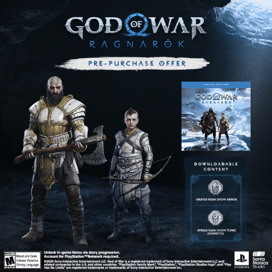 页面显示,该作需要关联第三方账户PSN。游戏的预购以及数字版豪华版奖励也已公开,预购可提前解锁奎爷和阿特柔斯的盔甲,豪华版则包括盔甲、武器、数字艺术集、官方音轨等一系列内容。
