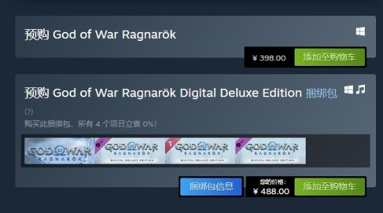 标准版游戏售价398元,豪华版定价488元。豪华版包括游戏“英灵殿”DLC、数字艺术集及游戏原声带。