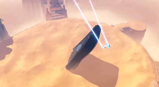 宣传视频中的一个片段给不少玩家留下了深刻的印象:一个巨大的黑色PS5从沙漠中出现,随即化身飞船面对宇宙中的多个敌人。有玩家认为这个黑色的PS5是Pro机型的暗示,不过大部分玩家认为不太可能,因为其看上去不过就像一台没有外壳的PS5主机罢了。