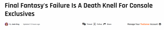 外媒:FF16/FF7RB的失败敲响了主机独占游戏的丧钟