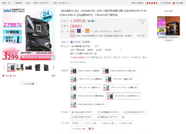 该主板目前已经登录京东商城,在京东技嘉DIY旗舰店的售价为3299元(其价格与Z790冰雕X持平)。