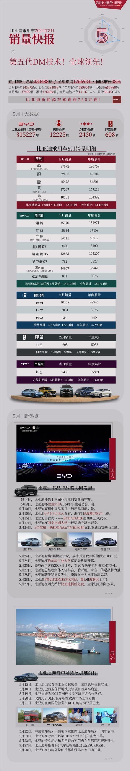 比亚迪5月狂卖33万辆车:秦系列5.7万拔头筹