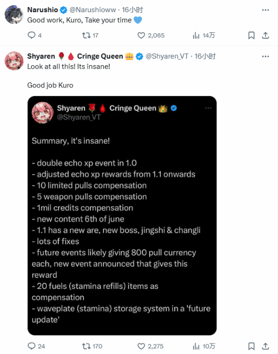 外国网友热议鸣潮道歉:送挺多 但还我角色下部设计!