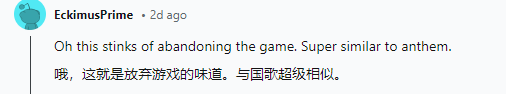 在Reddit论坛,玩家表示这就是要放弃游戏的味道,和《圣歌》非常相似。