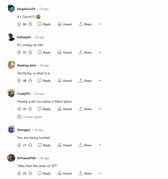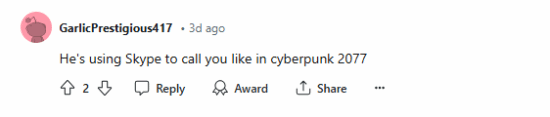 该玩家在Reddit论坛中展现了这一Bug,玩家们纷纷在评论区表示此Bug非常令人毛骨悚然。有玩家在评论区表示,这个Bug已经在游戏中出现了很长时间,且R星至今一直未能修复它,同时也有玩家用《赛博朋克2077》等游戏来调侃这一故障。