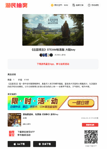 免费抽《庄园领主》!游民金币抽奖+兑换好礼 双重快乐